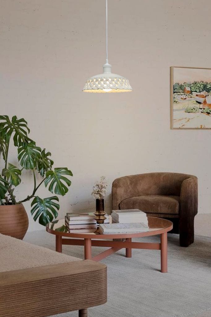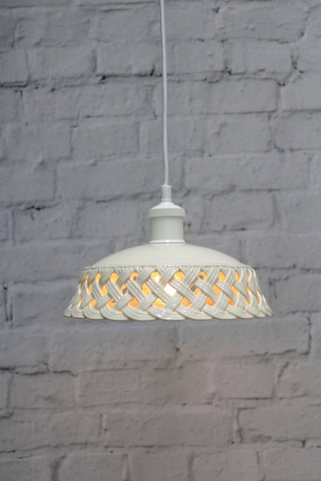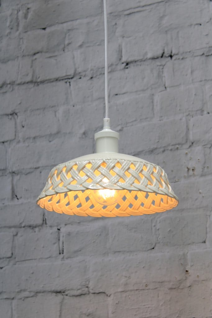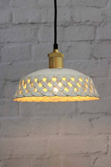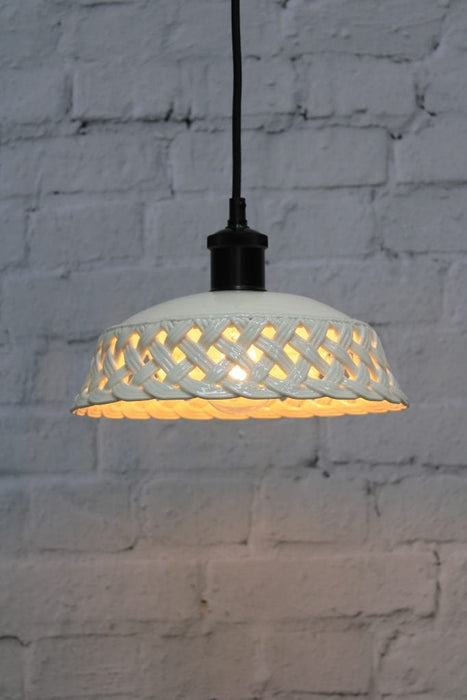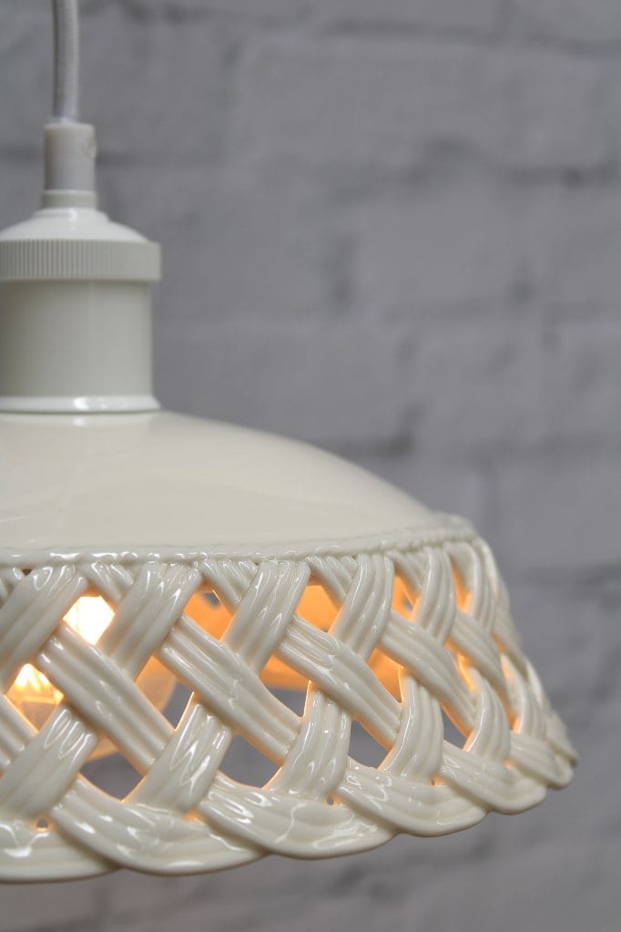 Create an old-school, classic atmosphere with the Amalfi Ceramic Pendant Light. The finely crafted lattice shape of the ceramic brings a nostalgic, antique touch. The shade is finished in an opaque white glaze, giving it a glossy surface and directing bright light directly down, with softer light filtering through the sides. This light will be a perfect fit anywhere from a vintage style café to a sunny, countryside home.