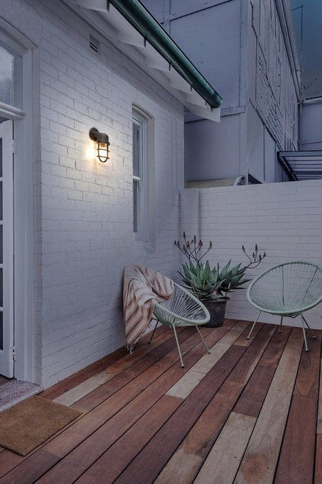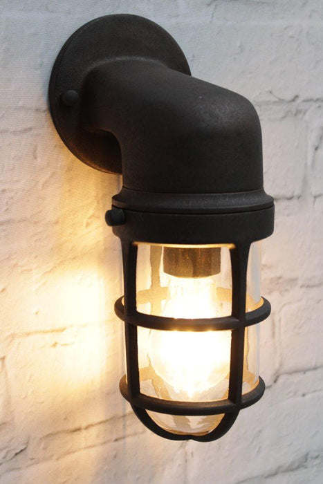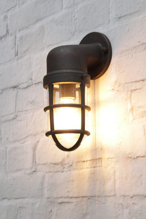 The Anchorage Cage Outdoor Wall Lamp brings a refined rendition of vintage maritime flair to multiple settings in your home or business. Signified by a robust design, it includes a clear glass cover enclosed in a cage metalware. The wall light comes in three finishes. Place lamps individually as a finishing touch or in multiples along a facade, this light is an ideal option for undercover porch lighting, deck lighting, garage facades and cafe courtyards.