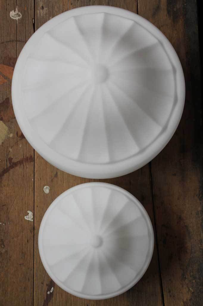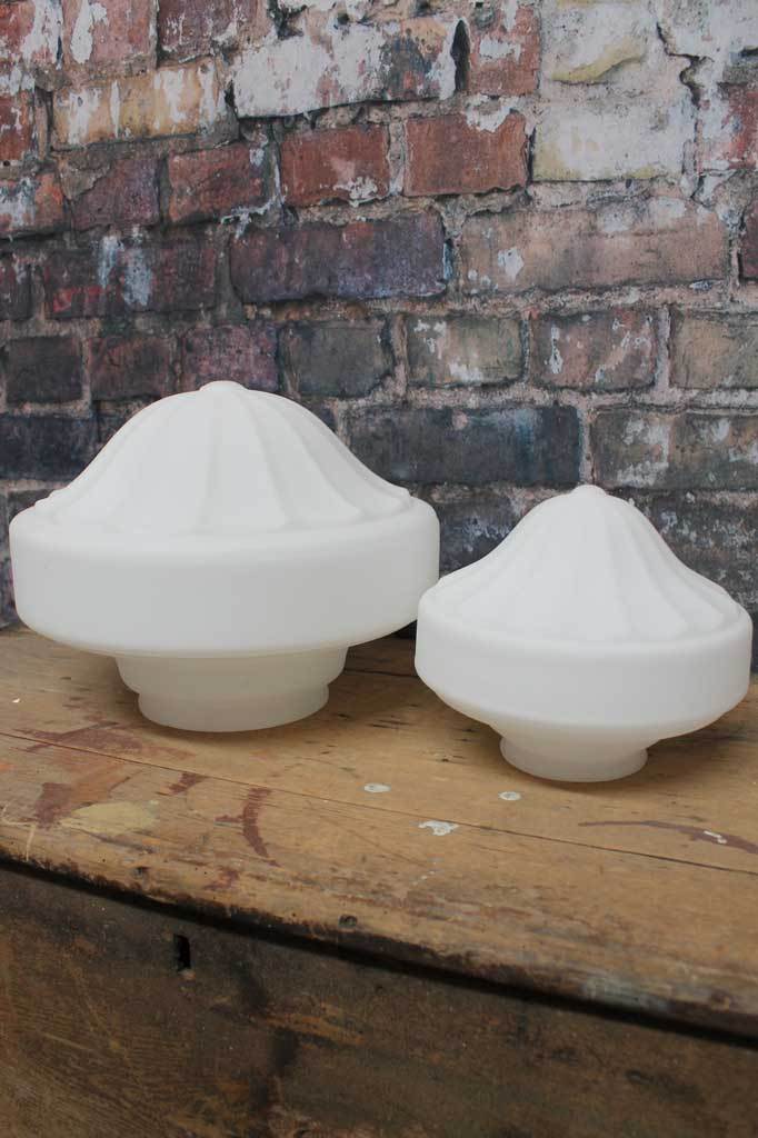 - The milky glass shades come in large and small sizes
