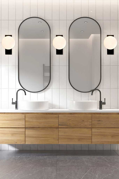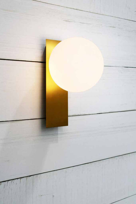 Exuding understated elegance with its clean lines and curves, the Banff Sphere Wall Bracket Light offers a luxe update for your interiors. Mounted on a slim metal plate, its glass shade in a choice of clear or opal finish produces two contrasting lighting effects. The metal face plate comes in a sleek black finish for contemporary flair or a gold brass finish to emphasise a classic look. Oriented with the shade either at the top end or the bottom end, this wall light makes a stylish solution for vanity lighting, bedside lighting, and cafe and restaurant lighting.