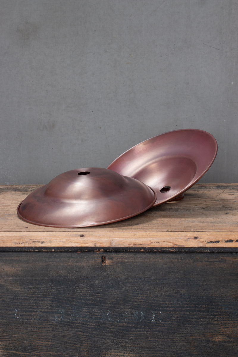 - The Aged Solid Copper shades are made from solid copper. It has been fired for an aged look finish. These shades have a natural oxidised finish that continues to develop over time. The rustic finish is rough showcases the natural aged beauty of copper. The inside is cleaned (not buffed) and then left raw. This finish will continue to patina over time dependant on the environmental conditions they are placed in.