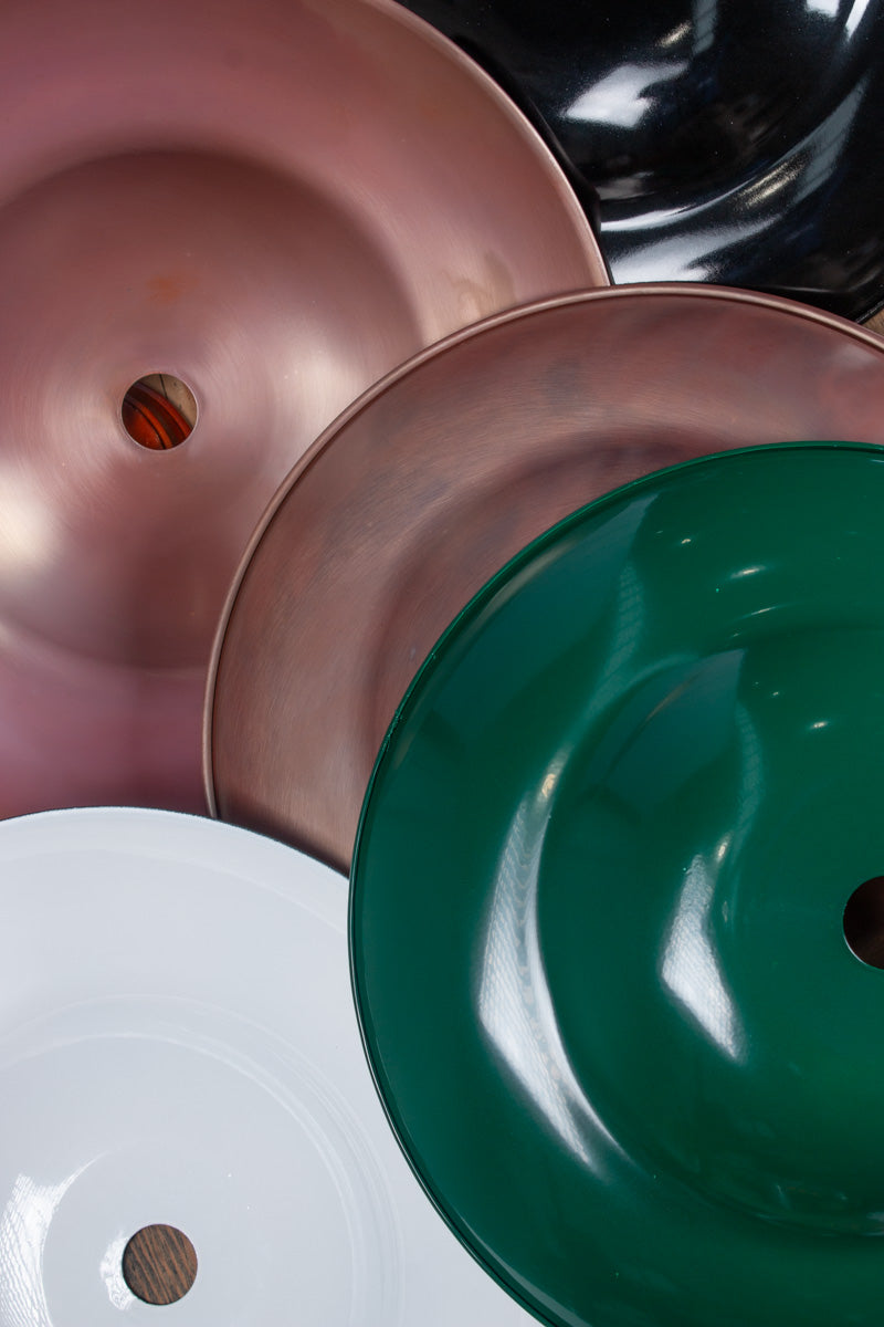 - The steel shades are available in Black enamel or painted Federation Green finishes with a white inner.