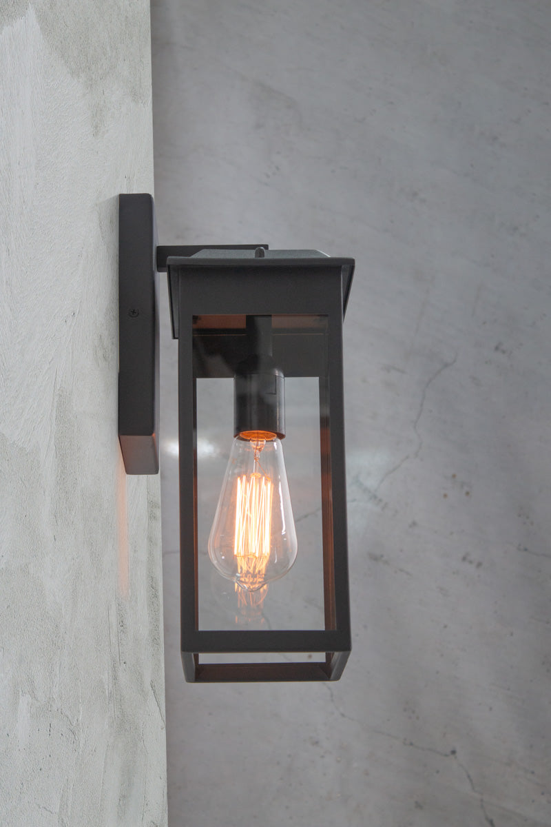 Our Barrowgate Exterior Wall Lantern is a modern take on a on the classic lantern style. Crafted from sturdy steel and finished in matt black, this exterior wall light is both durable and stylish. The clear glass panes on front and sides add a touch of sophistication, while the open bottom makes changing bulbs a breeze. With an IP23 rating, it’s great for brightening up your front door or adding charm to a back patio. Pop in a filament bulb to really make it shine!