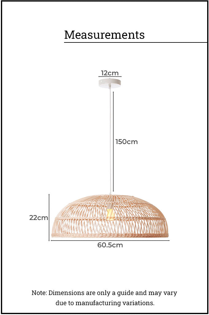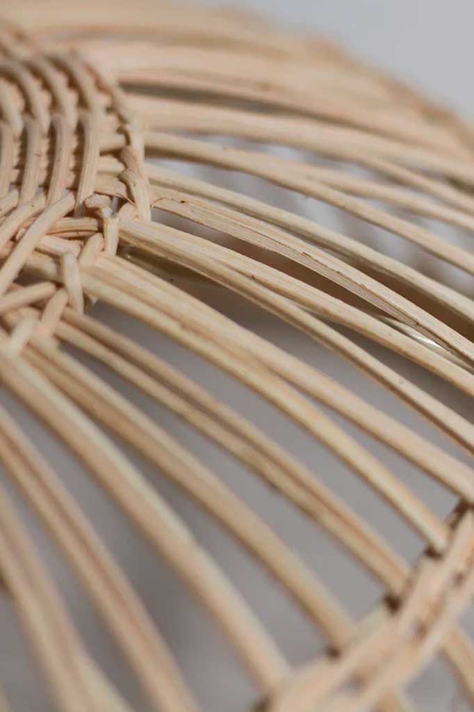 - Craftsmanship present in each piece of hand-made rattan light.