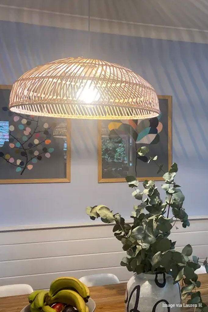 Crafted from hand-made rattan, the Barwon Rattan Pendant Light beautifully blends classic coastal charm with contemporary adaptability. This versatile lighting fixture adds warmth and sophistication to any space, making it the ideal choice for beachside homes or above dining tables. With a wide but directional glow, it offers adaptable lighting to suit any setting.