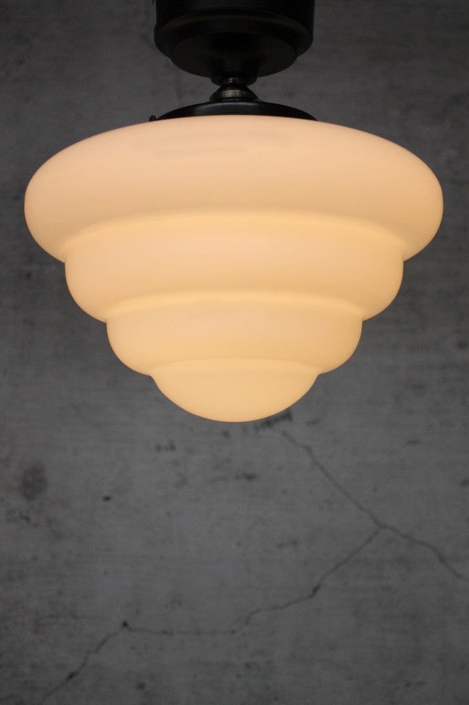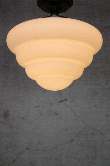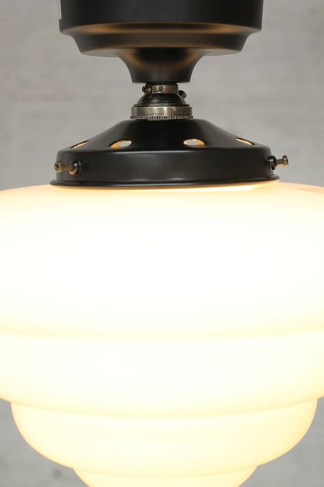 The Beehive Batten Light will add a nostalgic charm into both modern and traditional interior spaces. This Art Deco styled shade is made from hand blown glass that has been given a classic opal finish. Complemented by a black metal batten holder, this light is ideal for spaces with limited hanging room. Line hotel hallways or entry ways in the home.