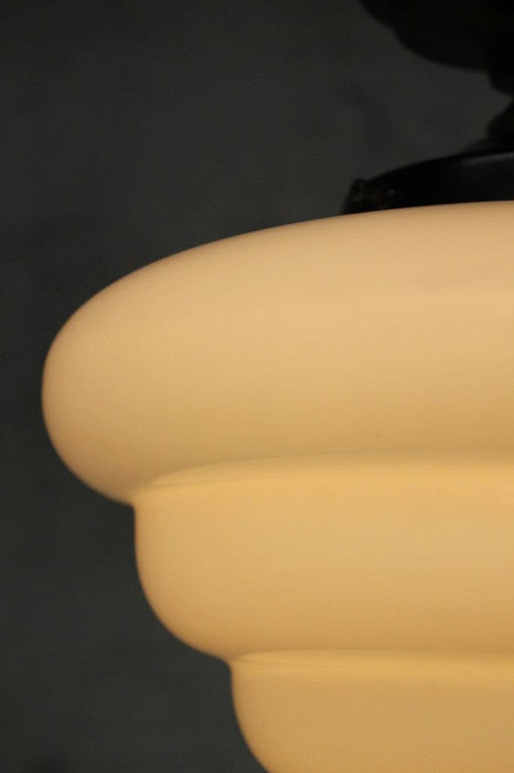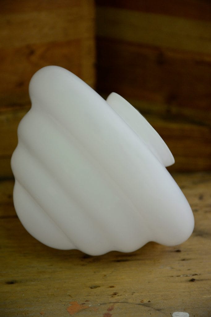 • The shade is hand blown with an opal finish. It measures 250mm in diameter at the widest point and 190mm high.
