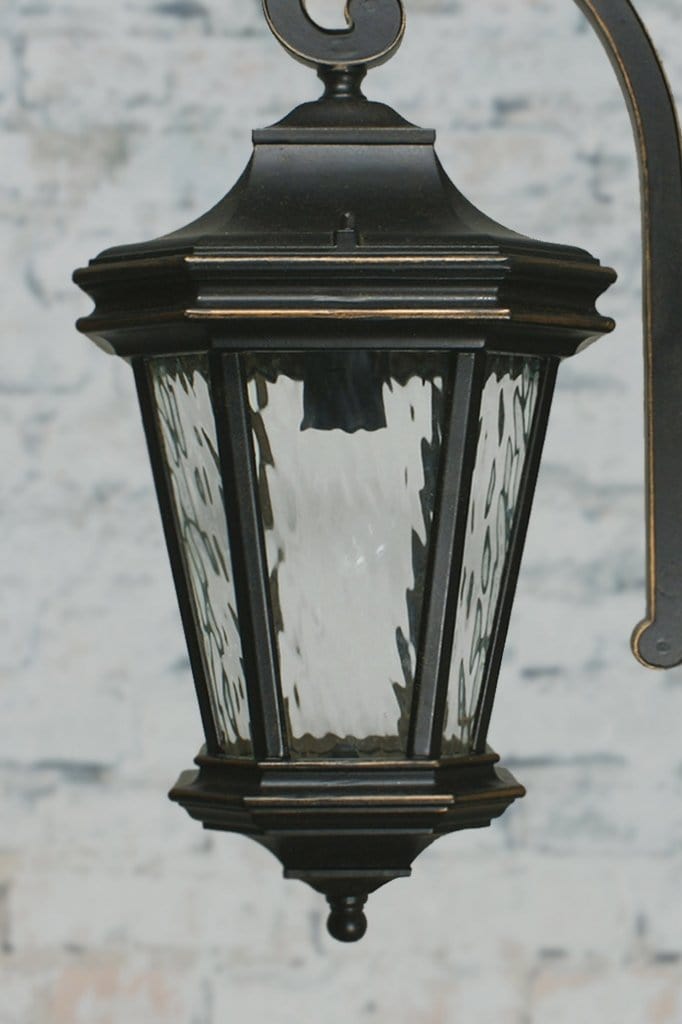 Capturing an authentic old-world charm, the Bellevue Exterior Wall Light brings to life the lantern lights of the past to elevate your outdoor facades. Mounted on an elegant wall bracket, its metal housing comes in an antique bronze finish and is fitted with tapering clear glass panes with a rippled texture. Complete with two size options to suit your space, this wall light adds a timeless touch to your front porch, patio or courtyard.