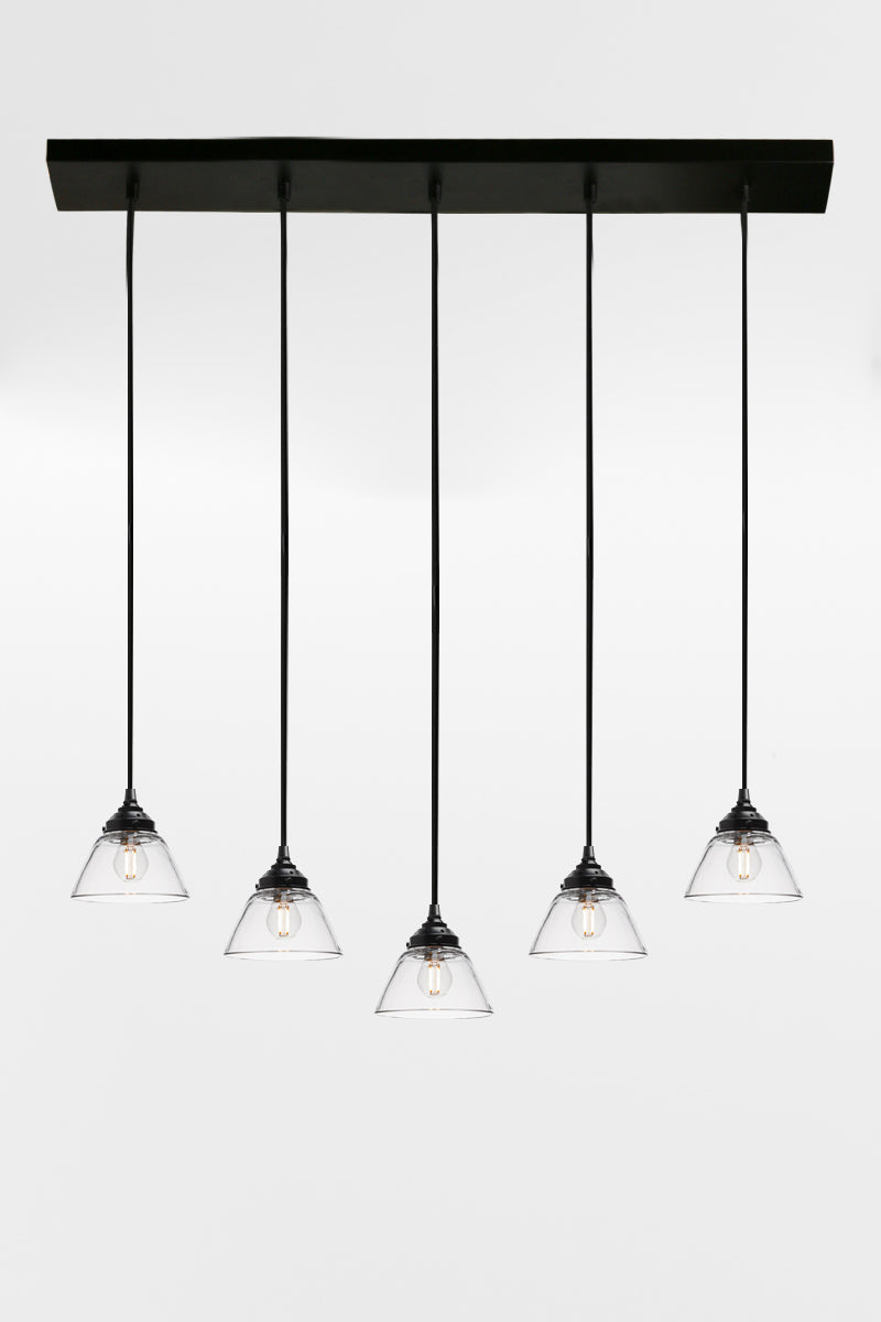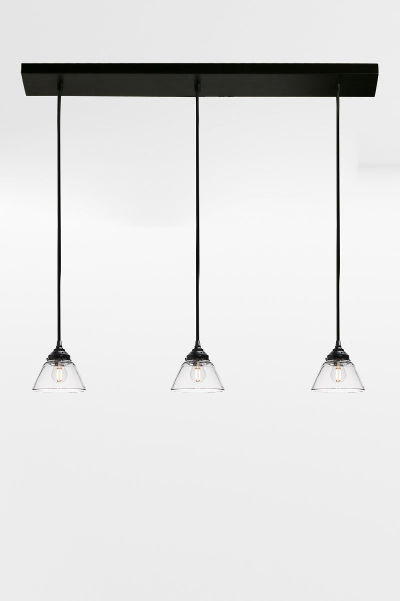 - This linear pendant features clear glass shades with open bases. Allowing light to spread generously across your space providing optimal illumination.