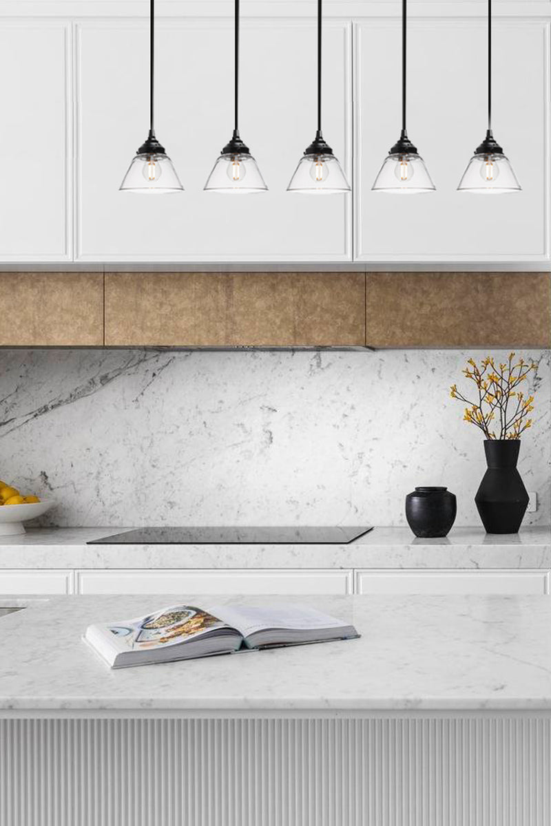Bring minimalism to your space with the Belmont Glass Linear Pendant Light. Featuring three or five light configuration suspended from a black fixture, easily customise the lengths to create your own unique design. Ideal for kitchen islands, dining tables or elongated surfaces.
