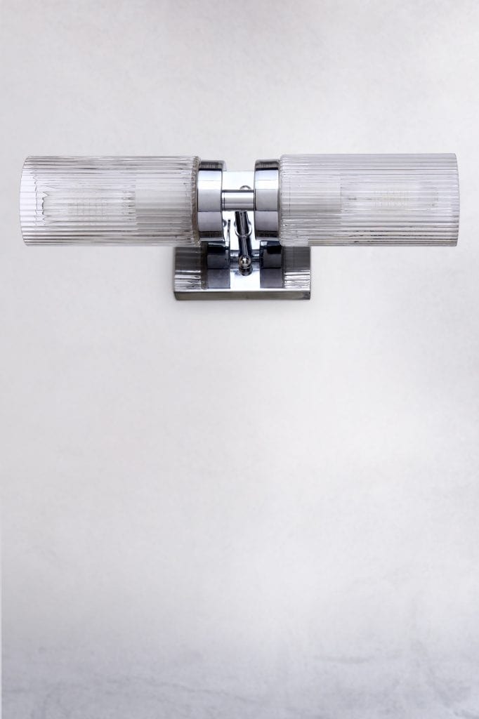 The Berclair Ribbed Glass Vanity Wall Light is a modern classic. Available in two finishes, these lights are available in one or two light styles and can be installed in various ways according to your preferences. The combination of curved glass and angle metal makes for a classic addition to your vanity or bedside. In a commercial setting, this light would suit a hotel hallway, speakeasy bathroom or intimate restaurant booth seating.