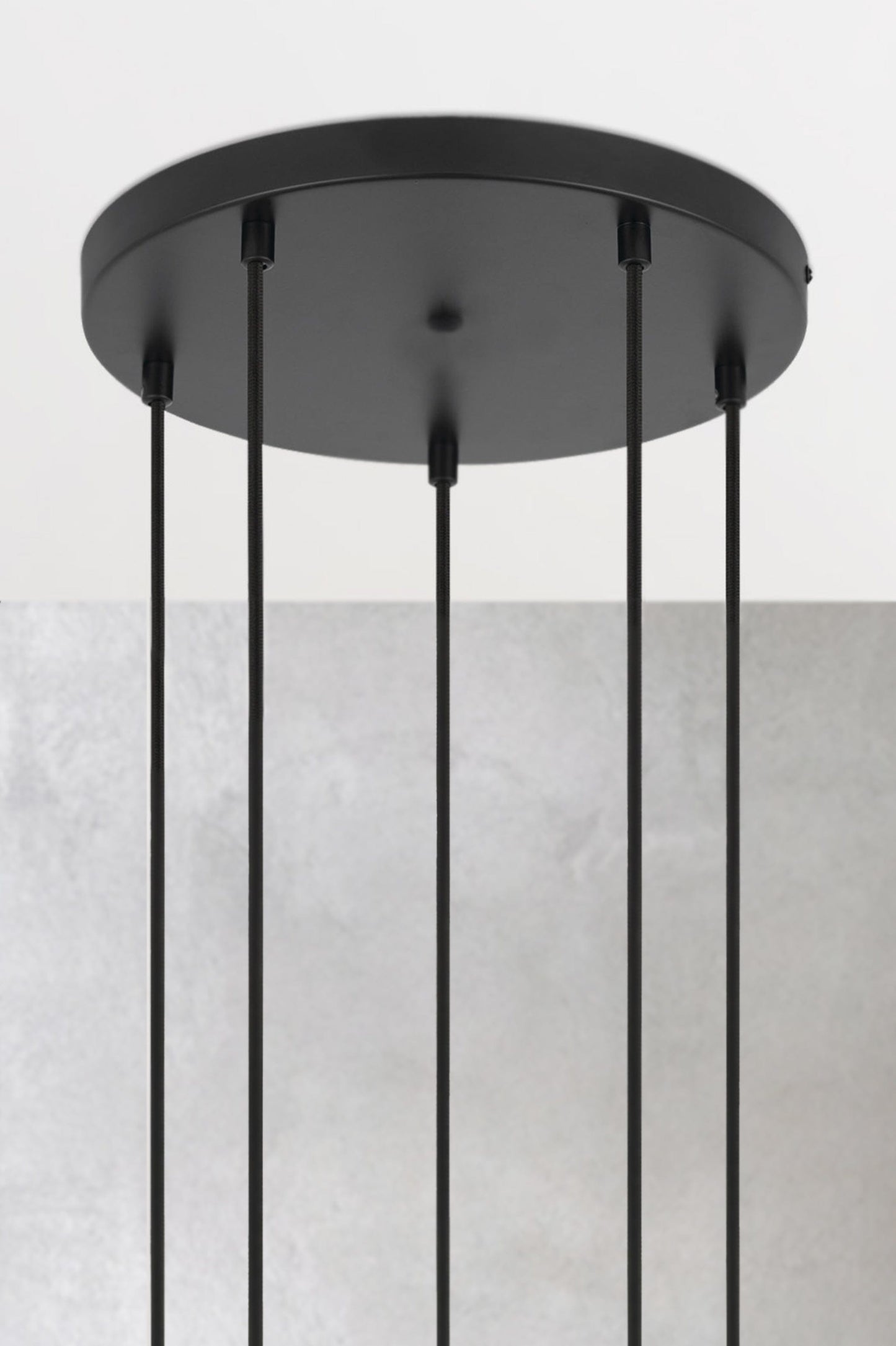 • The single light pendant has a matching ceiling rose in black or gold/brass finish, while the three light or five light variants have a matt black ceiling rose.