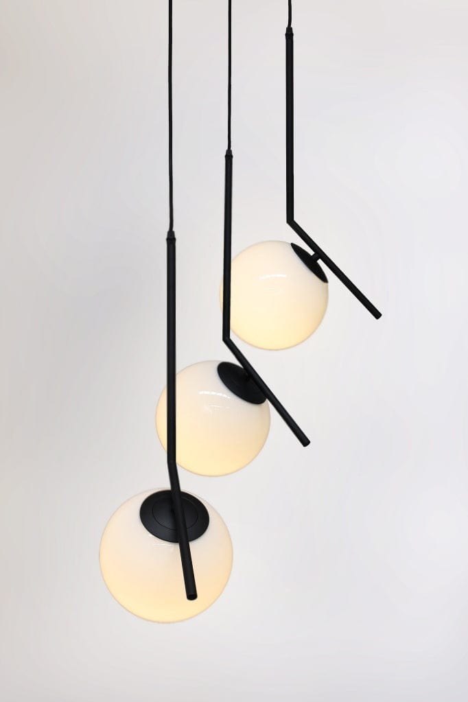 Add an element of elegance into your space with the Bonnie Glass Hanging Light. A glass shade with an opal gloss finish suspends from a matt black metal or gold/brass finish rod and a length of black fabric cord for a seamless design. This light is also available in a three light or five light variant in a black finish only. It complements a bedroom perfectly as a central light or as bedside lighting feature.