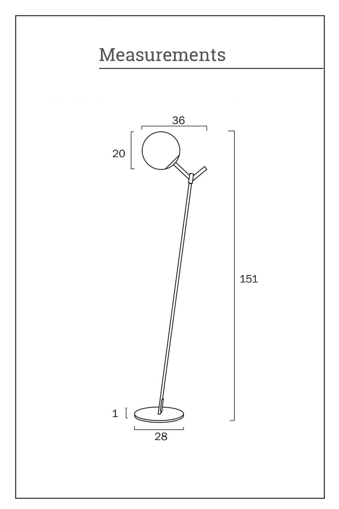 - The base of the floor lamp has a diameter of 280mm and is 10mm high.