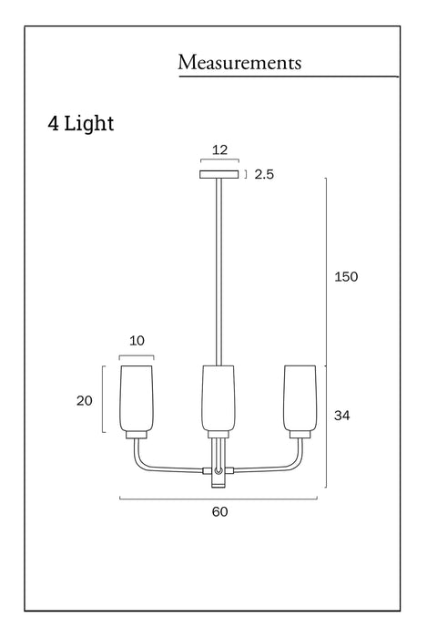 - The 4 light variant has a fixture diameter of 600mm.