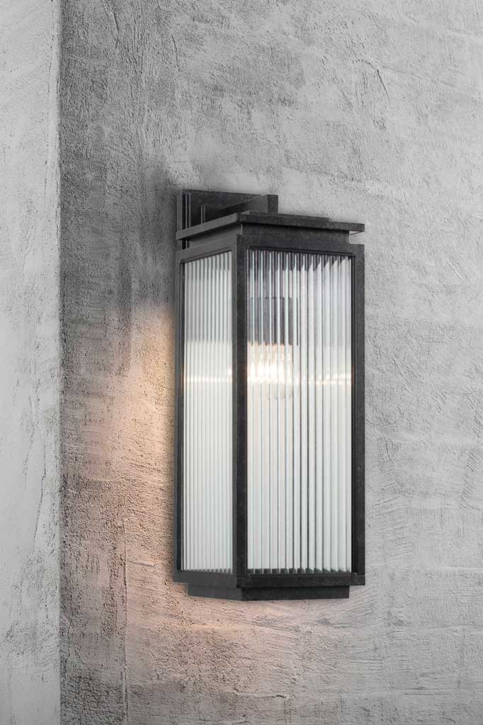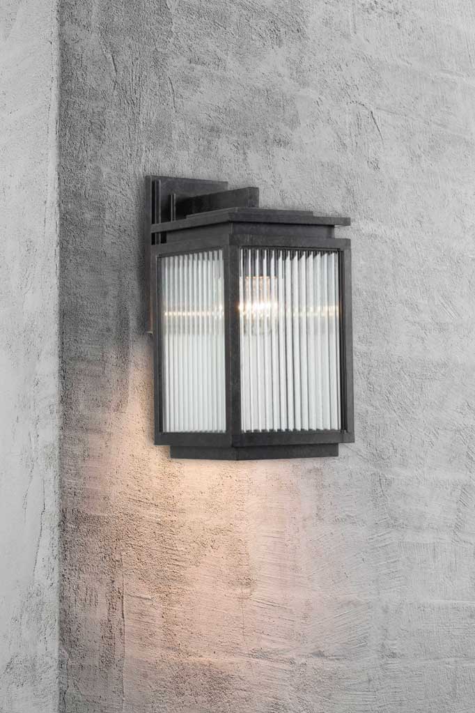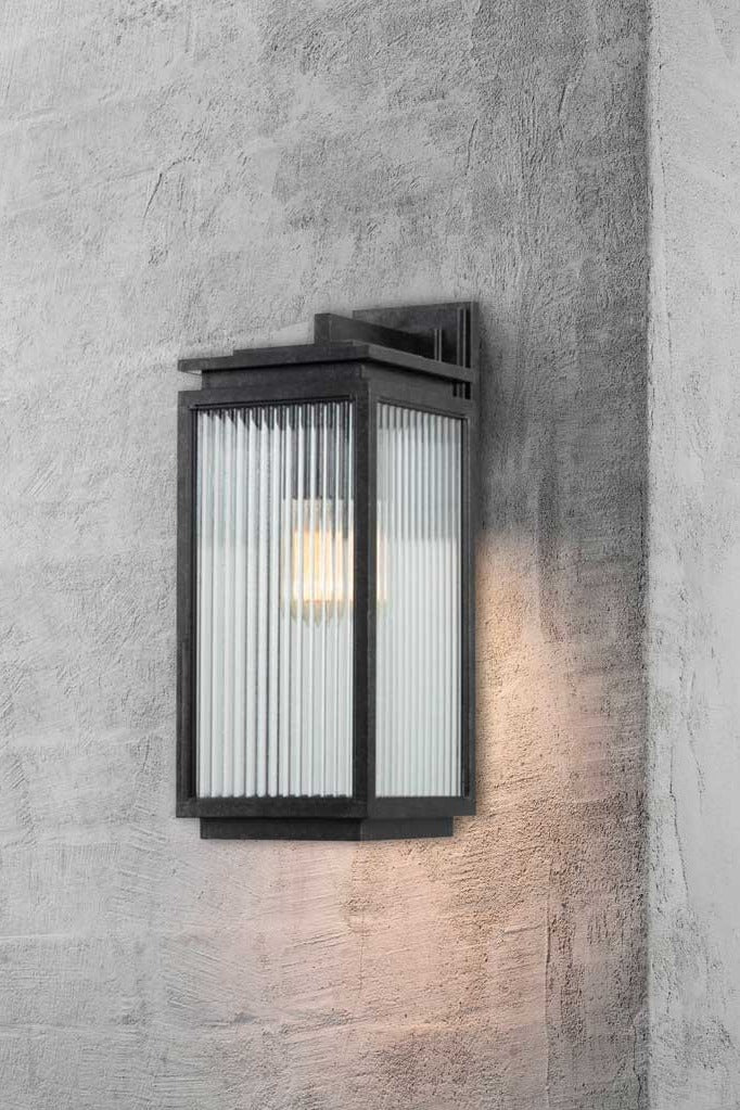 Illuminate your outdoor spaces with the timeless elegance of the Boulevard Range-Exterior. Offered in three different sizes, each featuring reeded glass panels set in a steel frame and finished in antique black. These fixtures combine both fashion and practicality. The smaller wall lights will add charm to compact corners. For a touch of grandeur, the commanding large wall light will enhance your outdoor ambiance with beauty and illumination.