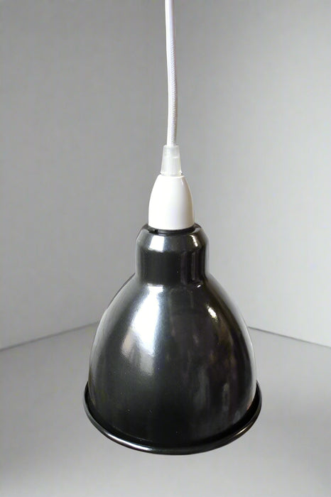 The Brasserie Pendant Light is a charming pendant that will add vintage style to your home. The steel shade is inspired by early French industrial design, and is finished with a black enamel outer and white inner. Place individually or in multiples in hallways, above the kitchen island, or low over bedside tables. Commercially this pendant would suit a European-style bistro, charming bakery or low-lit bar.