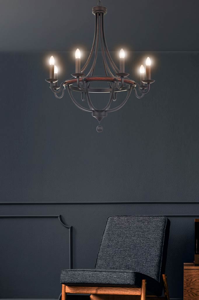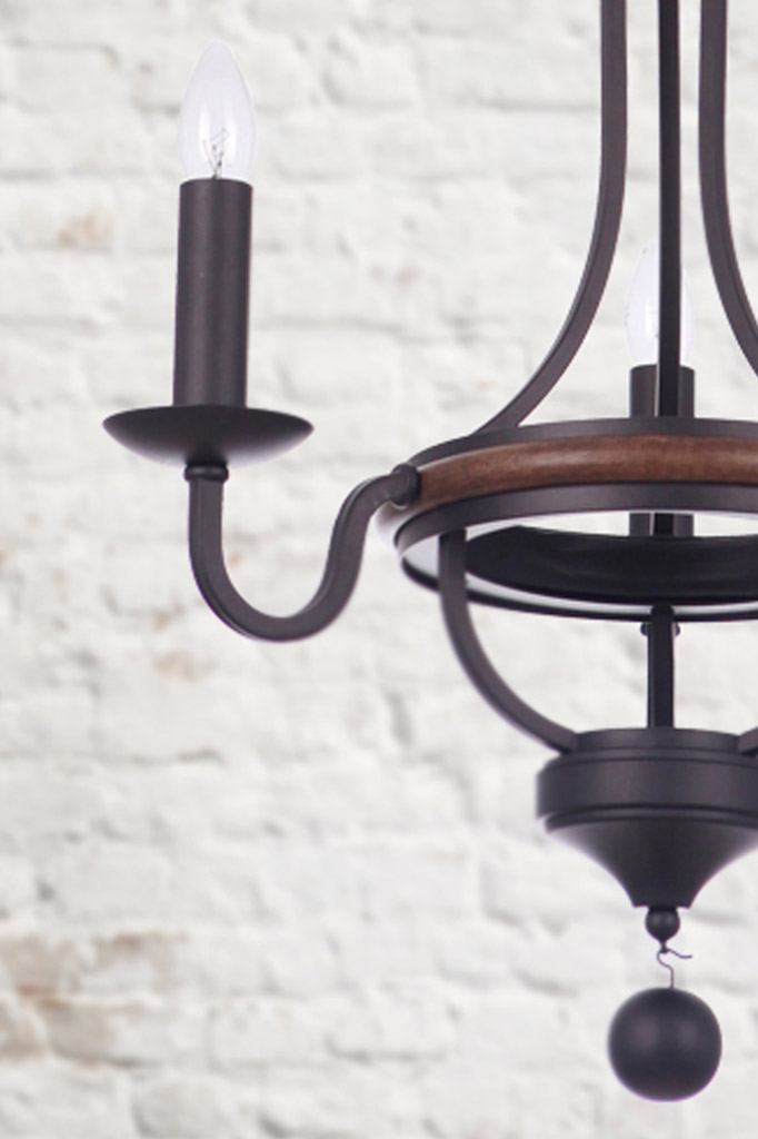 The Breckenridge Wood Chandelier is brimming with rustic provincial style. It features a steel framework with a bronze finish and wood accents. With a selection of three sizes, this chandelier would suit a formal sitting room or luxe master bedroom. In a commercial setting, it would suit a ski lodge, hotel reception or rustic beer hall.
