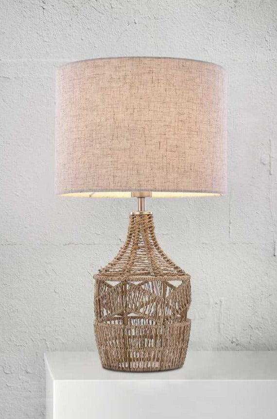 The Bronte Rope Table Lamp will bring a natural, organic look into your home or business. This is a unique light has been crafted with sustainable hemp rope. It features a natural linen drum shade to gives any space a bohemian feel. Add the lamp to any living area, desk or bedroom to create a more relaxed environment.
