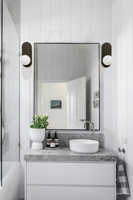 The Brooklyn Wall Sconce offers a sleek lighting update featuring clean lines and sophistication to enhance any modern space. Its glass ball shade in opal matt finish diffuses an elegant glow of light to produce a warm atmosphere. Mounted on a slim metal plate to complete an understated accent, a choice of two finishes allows you to easily complement any interior theme. Either as a single fitting or multiples, this wall light adds signature flair to your bedside, bathroom vanity and commercial venues such as restaurants and cafes.