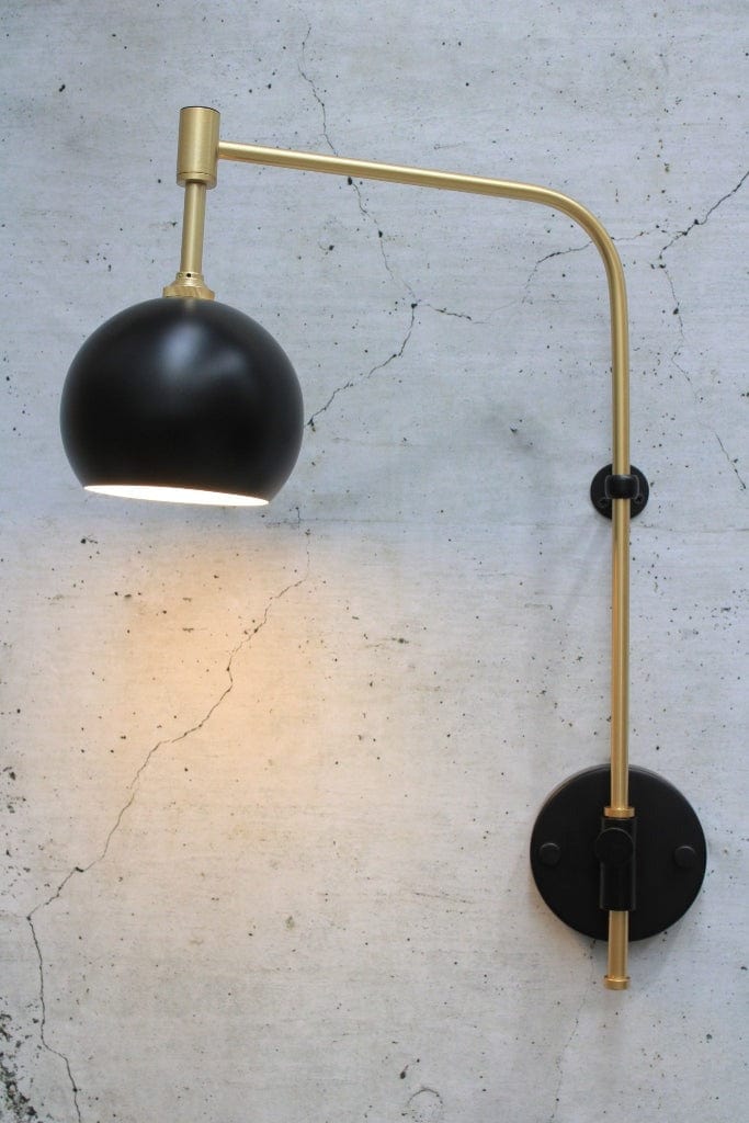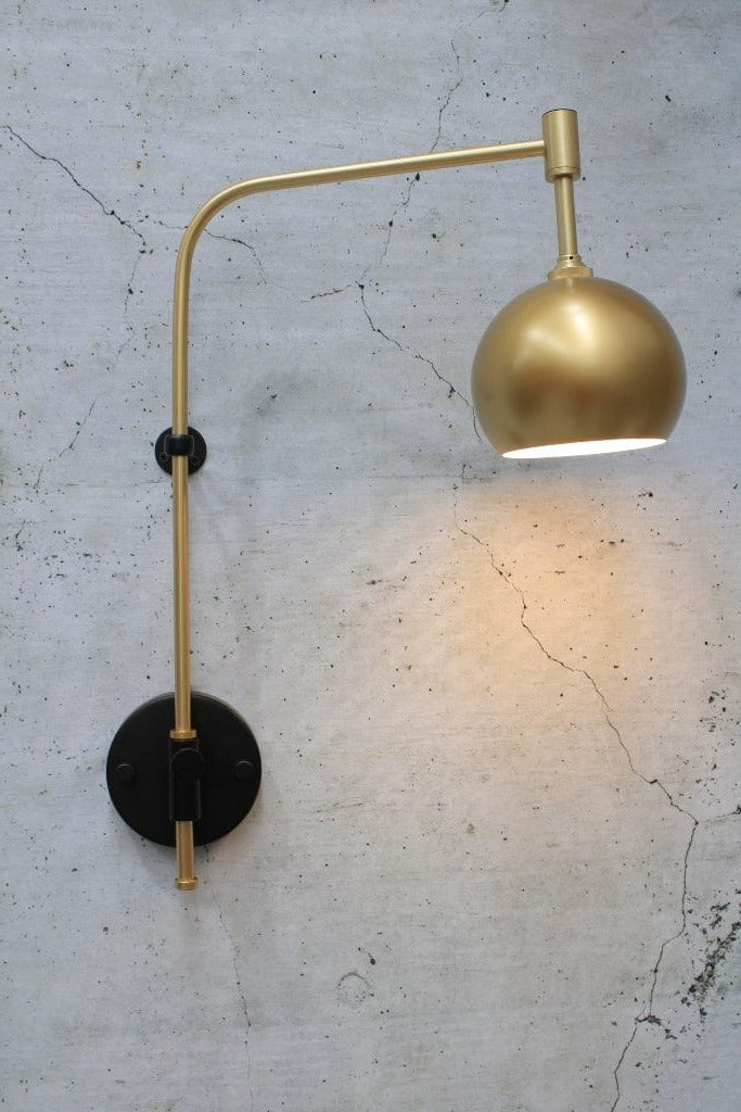 - The winged gold wall arm can swing 180 degrees against the wall once installed.