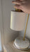 • This table lamp is comprised of a marble base, white metal shade and deep gold fixtures. The metal shade swivels and is tiltable. Ideal for task lighting.