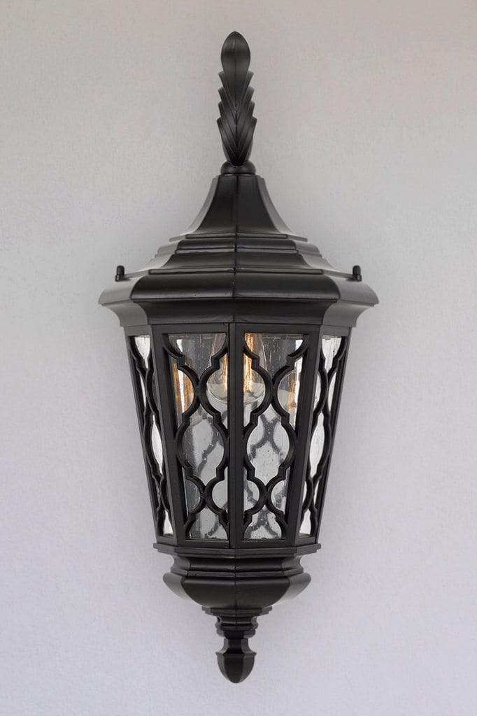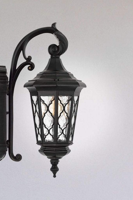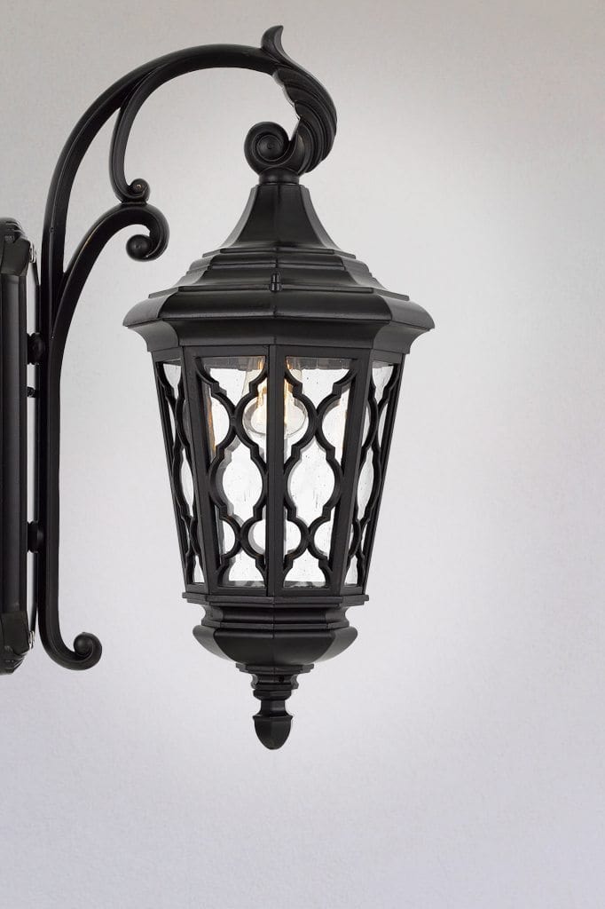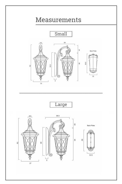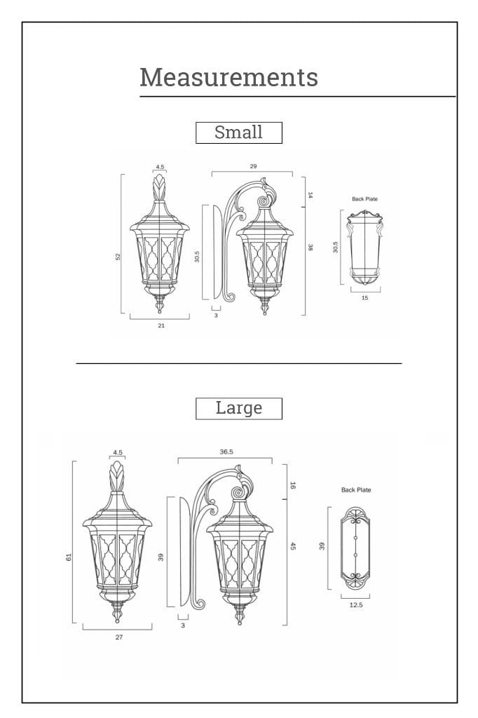 A nod to exquisite European styling, the Callington Exterior Wall Lantern adds an ornate touch to your outdoor facades. Constructed from cast aluminium in black painted finish, its glass panels have a subtle rain effect. Enveloped in elegant metal lacework and paired with a scroll cast arm to complete a classic sculpted look, this wall light comes in two size options to suit your needs. Be it for kerb appeal or enhanced outdoor living this outdoor lantern makes a distinguishing statement in your front porch, courtyard or balcony.
