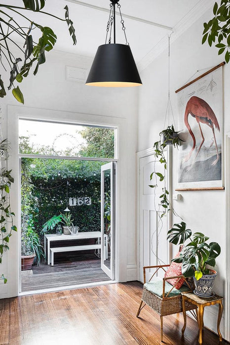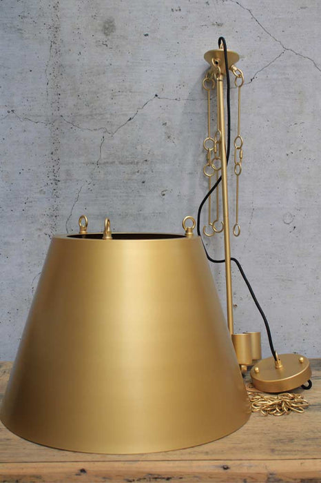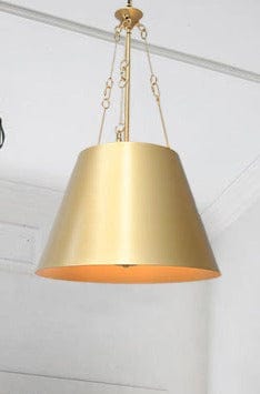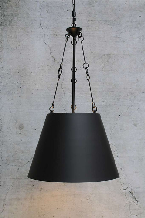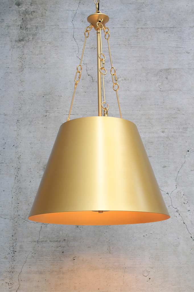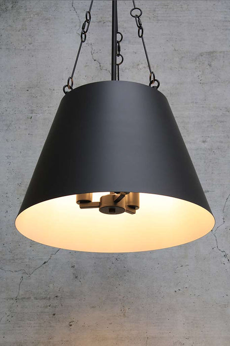 Enriched with a timeless silhouette is the Carlton Pendant Light. The transitional design shows its vintage inspiration with an intricate suspension of suspended chains. The tapered drum shade helps conceal the three lampholders to minimize glare and direct light vertically. The large size of this three light pendant makes it perfect for big scale commercial fitouts where it would sit over buffet tables or bars. At home, place this light in a grand entry hallway to make an impressive first statement. Available only at Fat Shack Vintage!