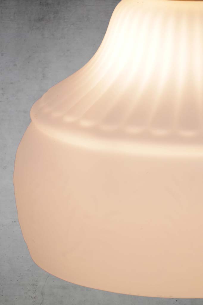 - It features an opal glass shade. The shades are pressed glass. Bubbles, lines, slight surface imperfections or discolourations are characteristics of all pressed glass. They are not considered defects.