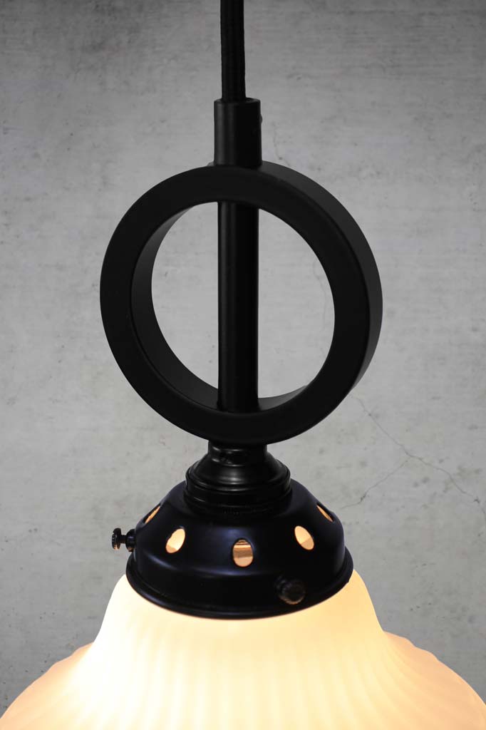 - The shade is suspended from a braided cloth cord in a choice of styles and finishes.