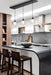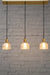 - The pendant light features three crosshatch clear glass shades that diffuse light.