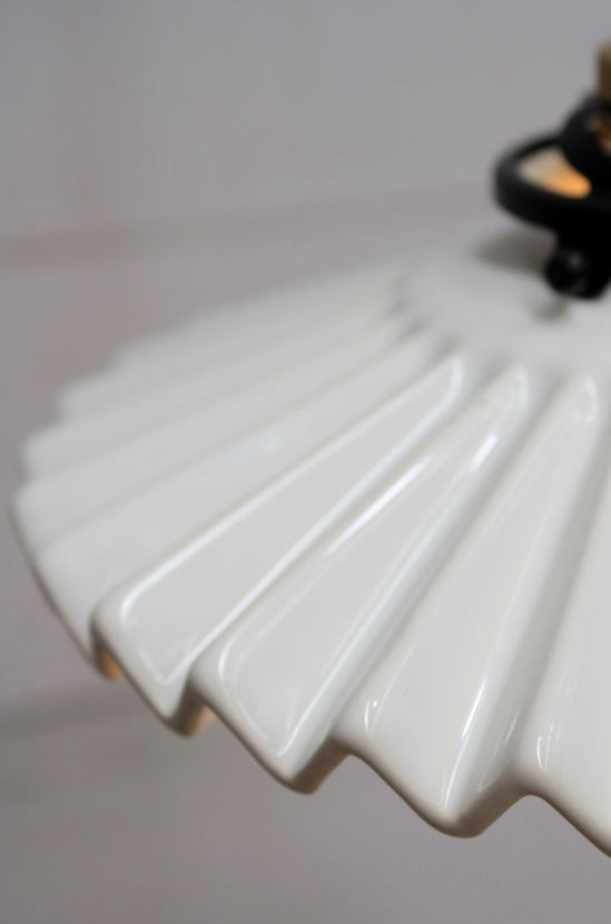 - The ceramic shade is fitted to the wall sconce with a gallery. All brass and steel wall sconces are paired with a matching gallery, except for the gold/brass steel sconce which is paired with a black gallery.