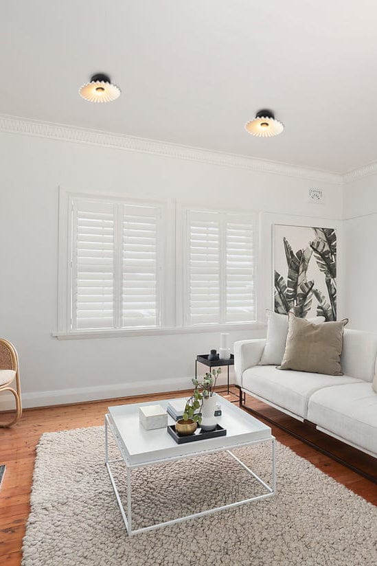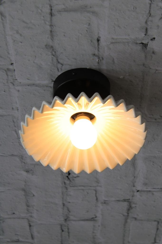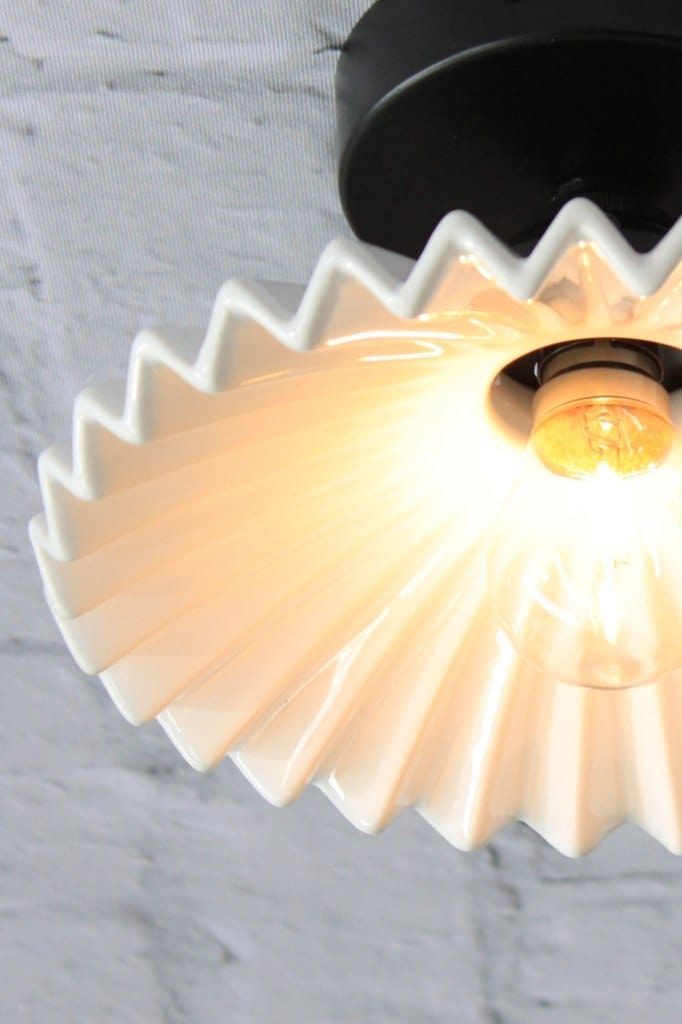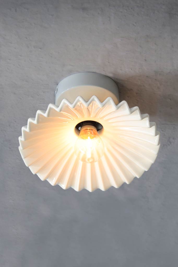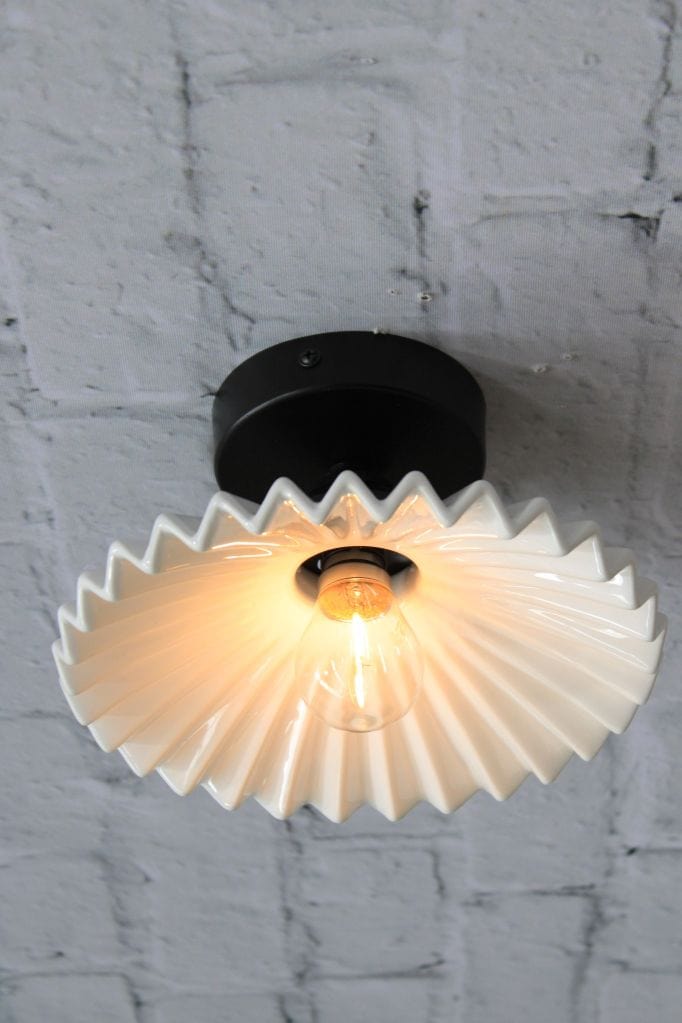 The Charmont Ceramic Flush Mount brings vintage flair to your space. Mounted close to the ceiling, this light is suitable for a range of locations, including those with limited ceiling height. The light features a pleated ceramic shade, crafted from ceramic with a glossy white glaze. This light will bring style and antique flair to any space from a home laundry to a local art gallery.