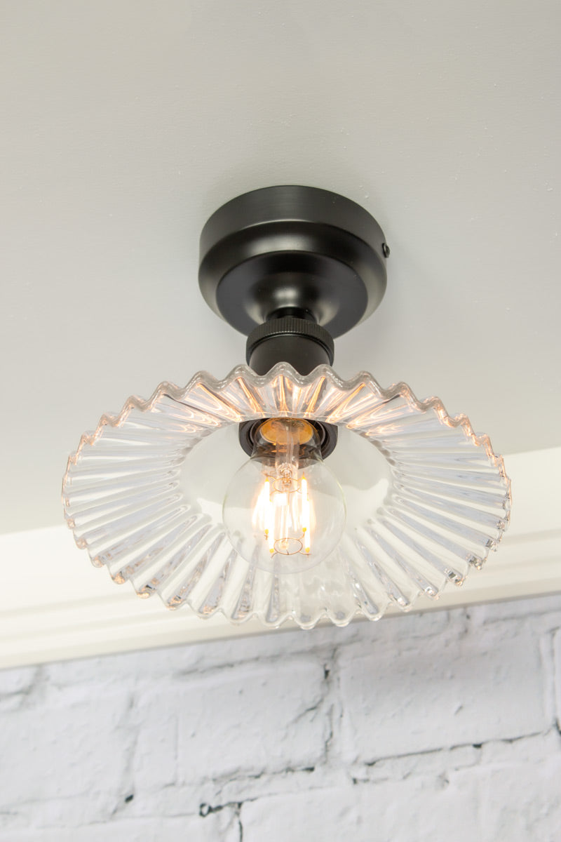 Add traditional old-world style with the simplicity of the Charmont Glass Ceiling Light. Constructed from a delicately scalloped glass shade, this ceiling light features a lampholder that is available in three modern and traditional finishes. Perfect for small spaces, this glass ceiling light is ideal for miners cottages and tiny homes.