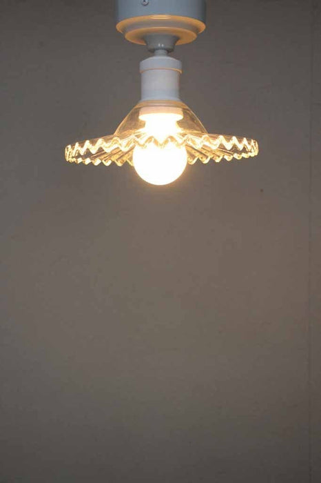 - Features scalloped glass shade