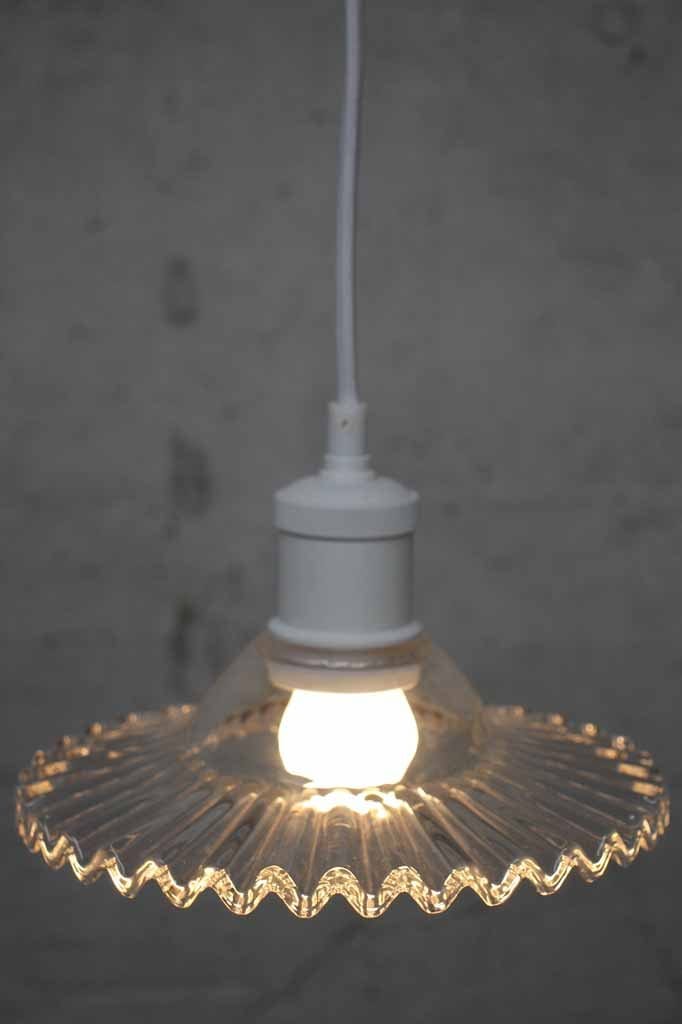 Step back in time with the timeless style of the Charmont Glass Pendant. Crafted from a unique scalloped clear glass shade, this delicate pendant light comes with three cord colour options. Ideal for a multitude of decors, this pendant light can create a statement when clustered together or on its own. Perfect for bedside pendant lights and entryways.