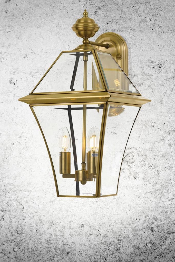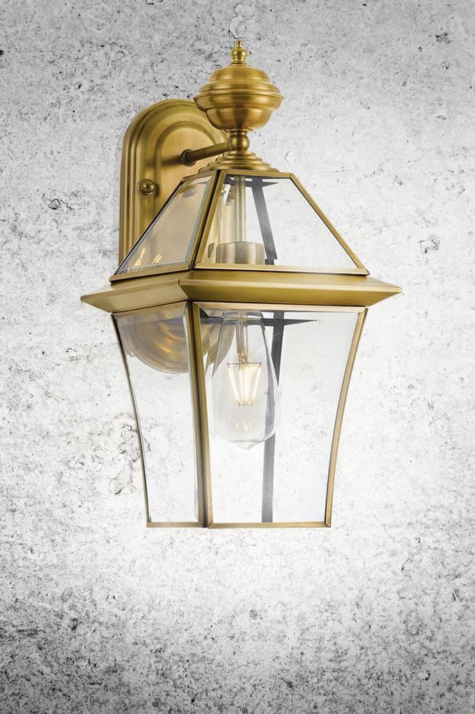 Blend a modern design with traditional style in your home with the Cheddington Exterior Brass Light. This outdoor ready light is made from solid brass in two finishes and features clear glass panelling in two sizes. The small light shade houses one bulb whilst the large sized shade takes three, both replicating a traditional candle lit lantern. Place on pillars outside a home or apartment, in an outdoor eating area in a winery or bar or in a master bedroom en-suite.