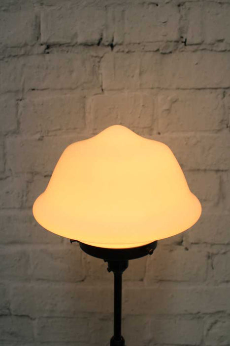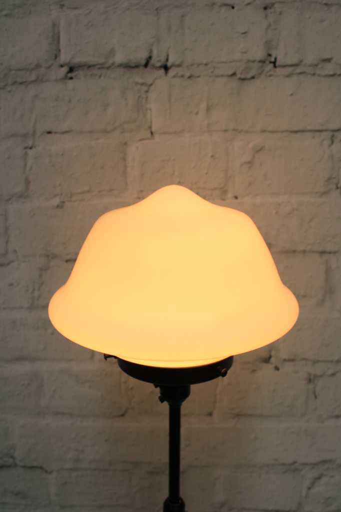 - The glass shade has been created from hand blown milky opal glass and is a testament to timeless design.