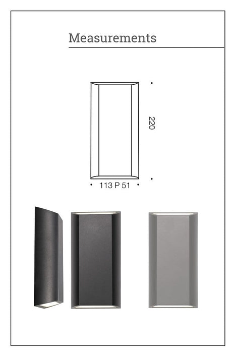 Featuring a clean seamless design, the Bloc Exterior Wall Lamp adds a sleek highlight to your exterior facades. The wall light comes in horizontal and vertical up/down lighting options in a choice of two finishes for easy styling. While its LED light source includes colour temperature changing technology to adjust ambience, an IP65 rating allows application in multiple indoor and outdoor settings. This LED outdoor light can be used to highlight house numbers, balcony designs, decks or your backdoor patio.