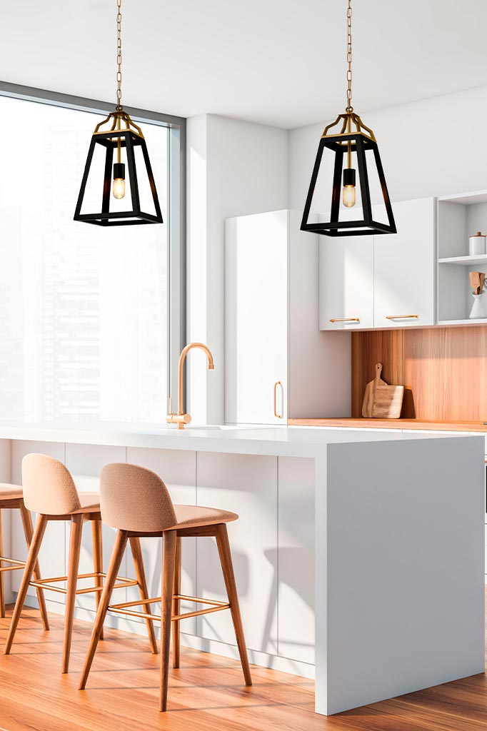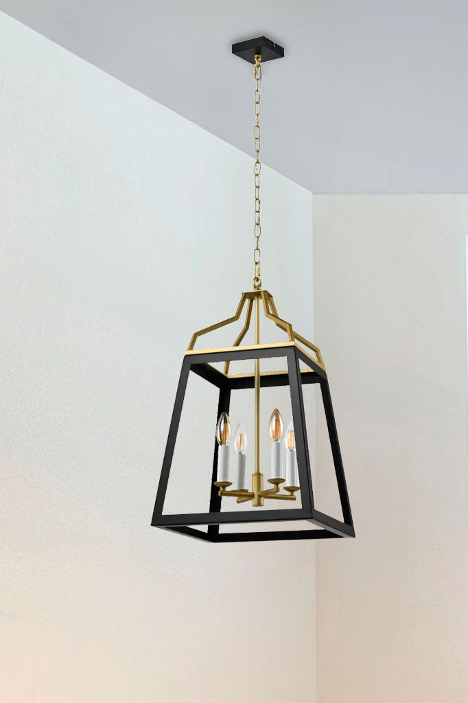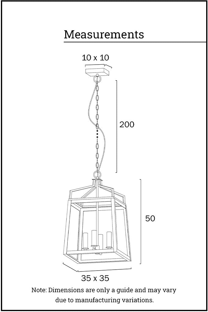 The Cobram Pendant Light brings a touch of authentic elegance to any room with its vintage form and contemporary finish. This open lantern design features a tapering silhouette comes in two sizes. Suspended by chain, the large lantern encloses a candelabra style fixture to complete a timeless lighting accent. This is a versatile light that can be used in both contemporary and traditional decors. Hang in a kitchen over island benches or create a grand statement as entry hall lighting.