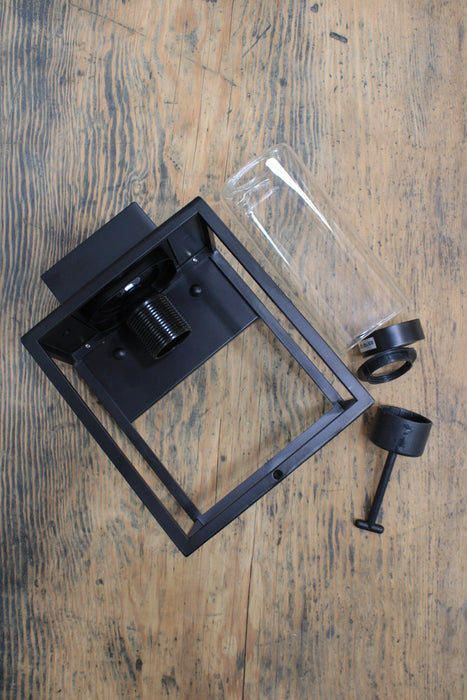 Defined by clean geometric lines, the Coffs Outdoor Glass Wall Light offers a contemporary rendition of the classic lantern light. Showcased within its metal framework is a clear glass cylinder enclosure to showcase the bulb within. Mounted to the wall with a rectangular metal plate, the wall light adds distinctive character to indoor and undercover outdoor settings. Either as a single feature or multiples, this wall light is ideal for a front porch or verandah or placed either side of a front door.