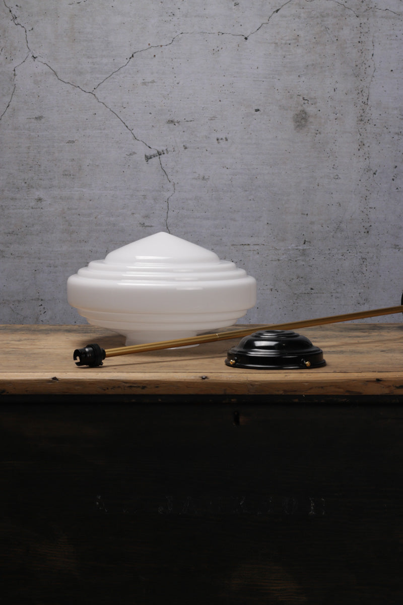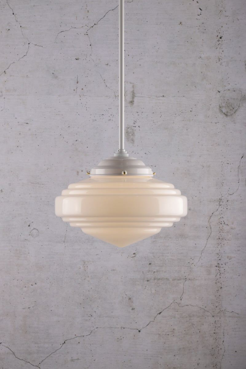• Handmade opal shade with unique Dco inspired design
