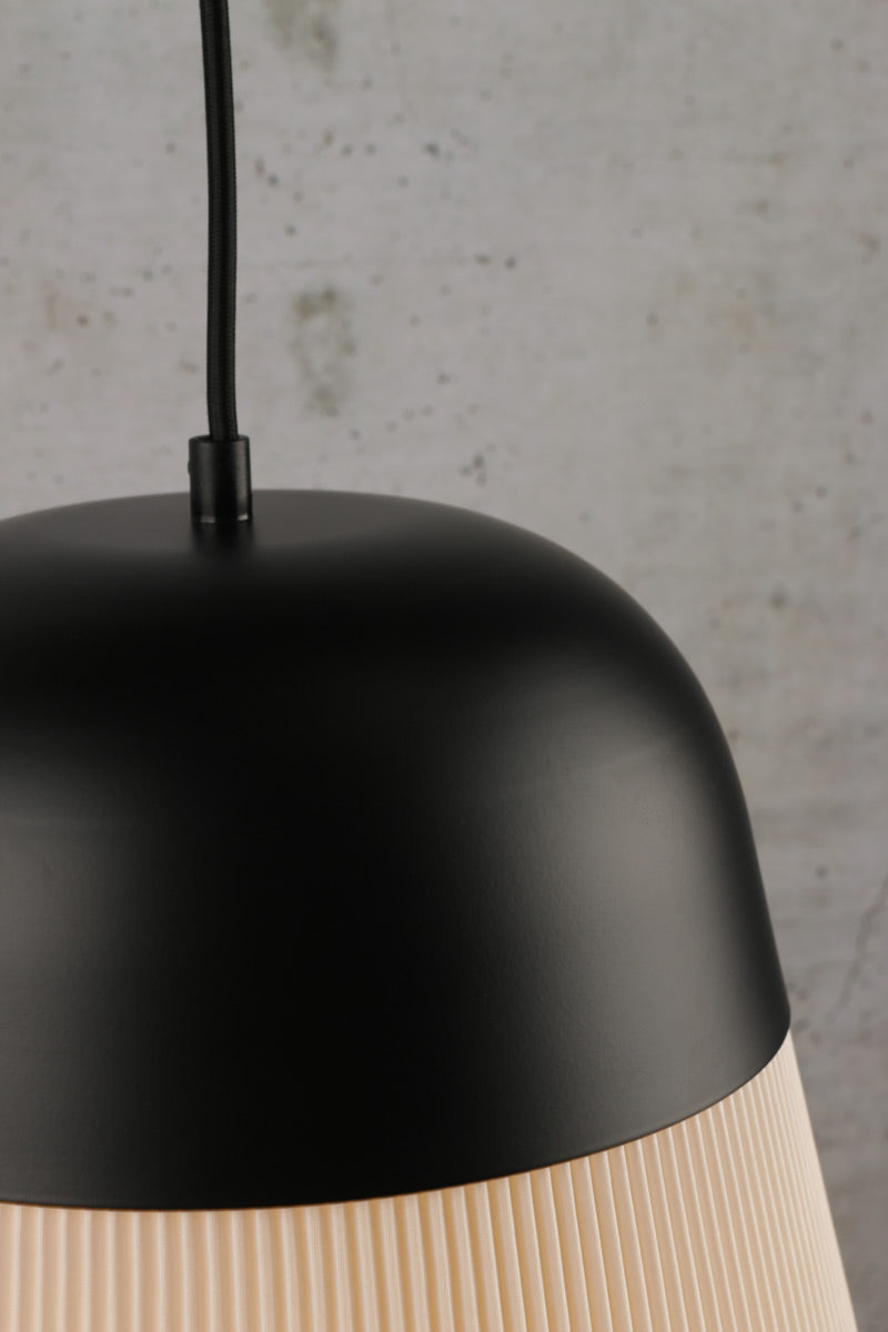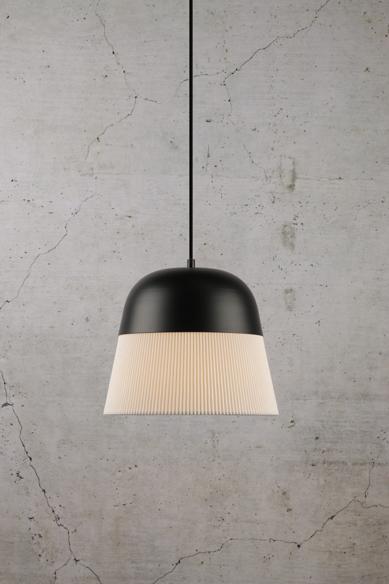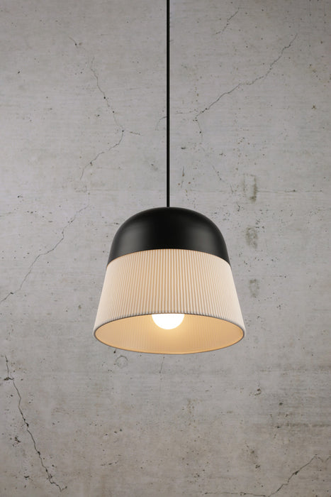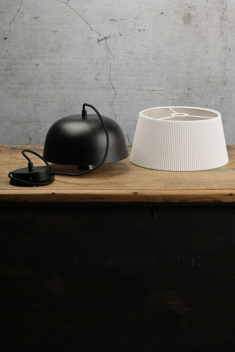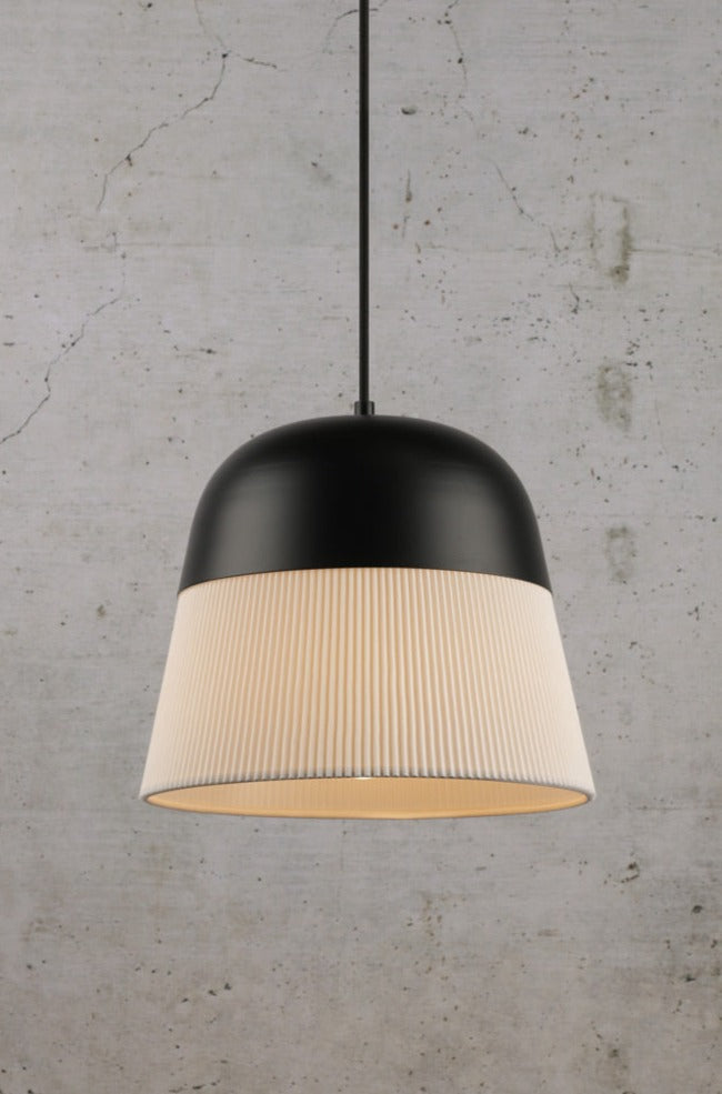 Colombes Pleat Pendant Light melds classic mid-century visual elements with contemporary materials. Featuring black fitting with a timeless pleated shade. This pendant light offers an exquisite textural complexity. Suitable for living rooms, hanging multiples over a dining table or restaurant fit-outs, this light is an ideal mix of modern and vintage design.