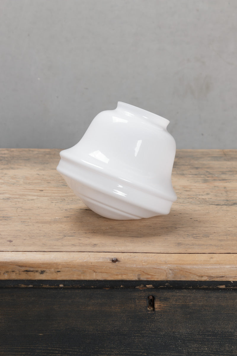 - The handmade opal glass shade features graceful curves that cast a beautiful glow in any space.