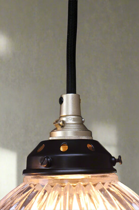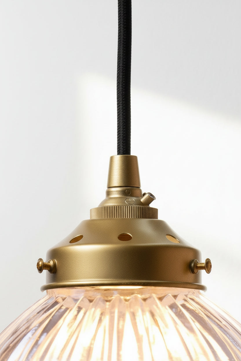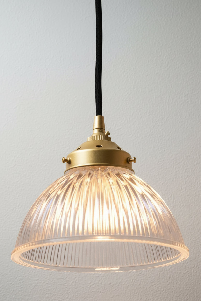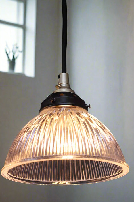 - Its ribbed glass shade draws from the holophane glass style of the early 1900s.