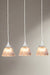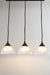 - The three shades are mounted from a metal ceiling plate with braided round cloth cords.