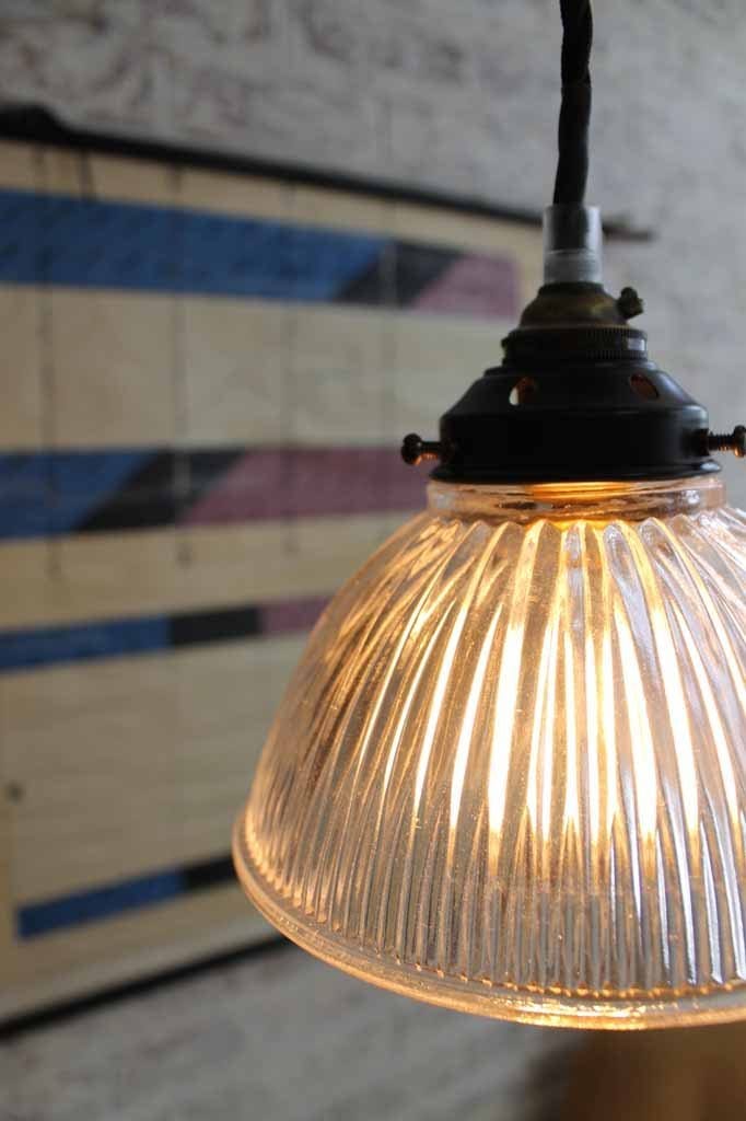 • Crafted from artisanal rippled holophane glass for an authentic vintage look