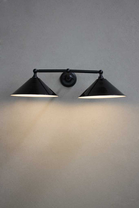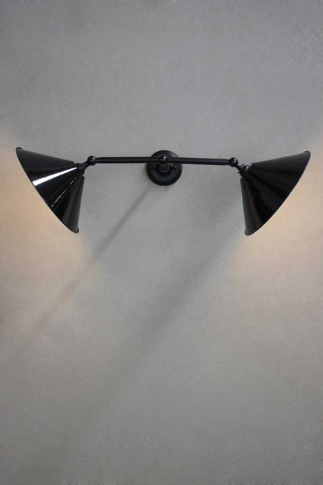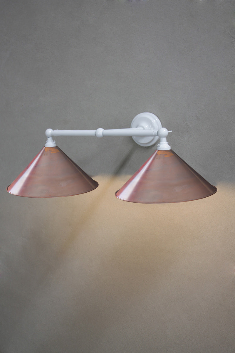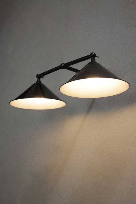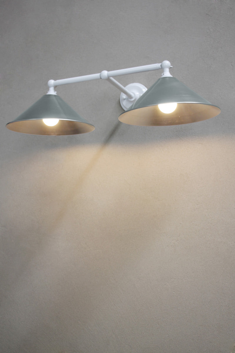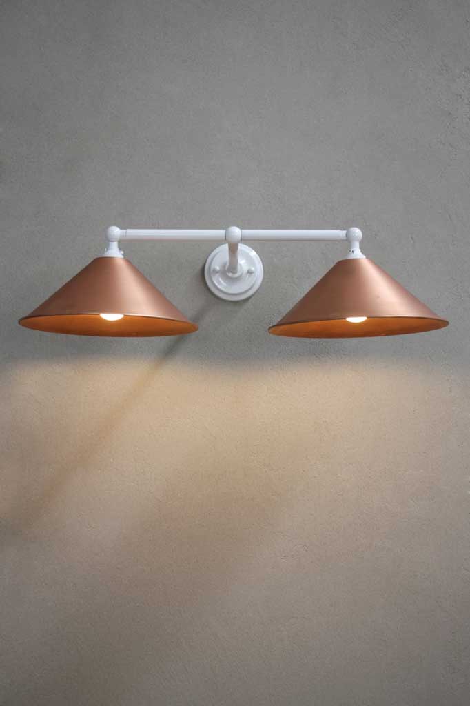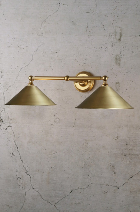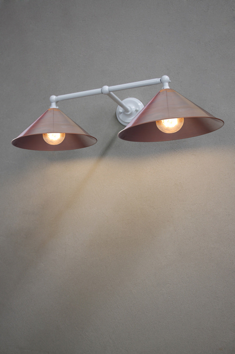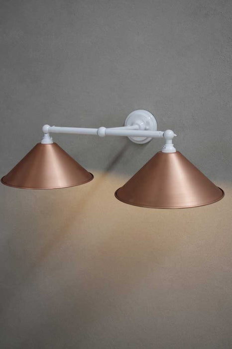 The Cone Double Swivel Arm Wall Light brings a distinct element of vintage elegance to a range of living spaces. Featuring stylish combinations of modern and classic finishes, the wall light offers a versatile collection to complement wide ranging décor styles. Its brass, copper or steel cone shaped shade comes in a selection of painted and natural finishes, accented with a steel double arm sconce, in a choice of three finishes. Be it a luxe accent or timeless classic, the wall light makes a statement in any interior and is ideal for dining rooms, kitchens, hallways and for vanity lighting.