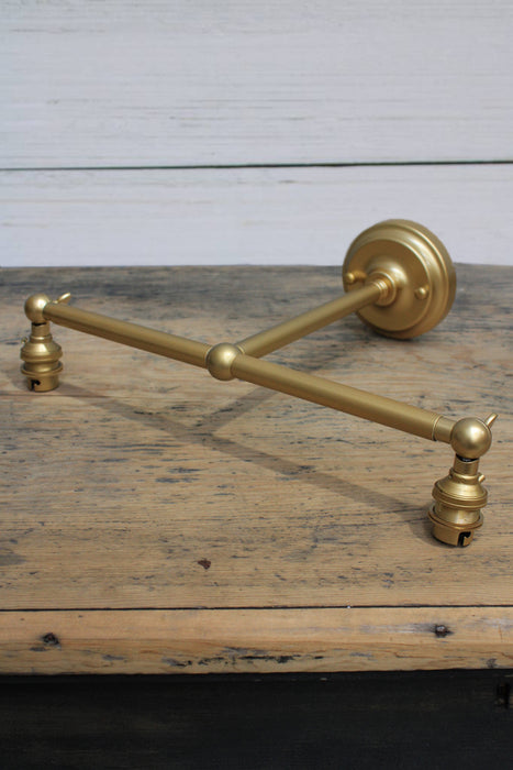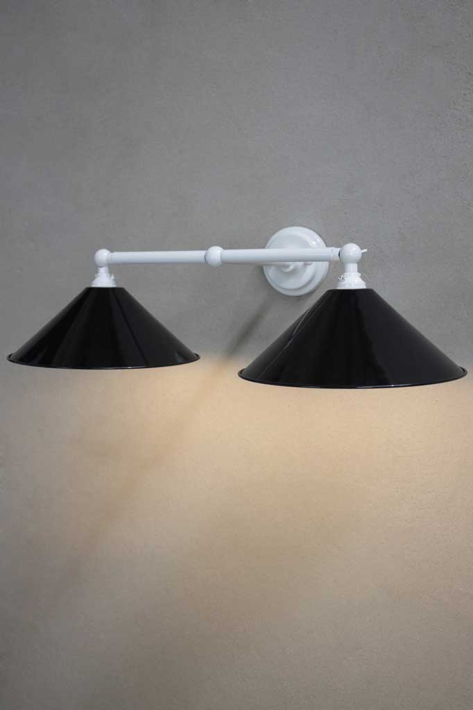 - The double arm steel sconce comes in Black, Gold/Brass and White finishes.