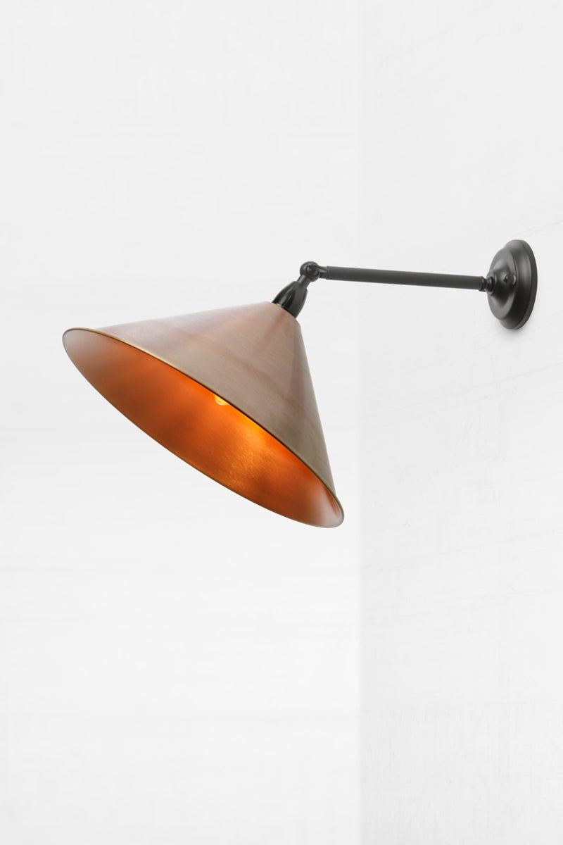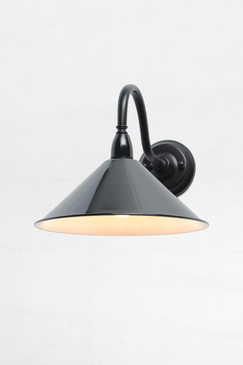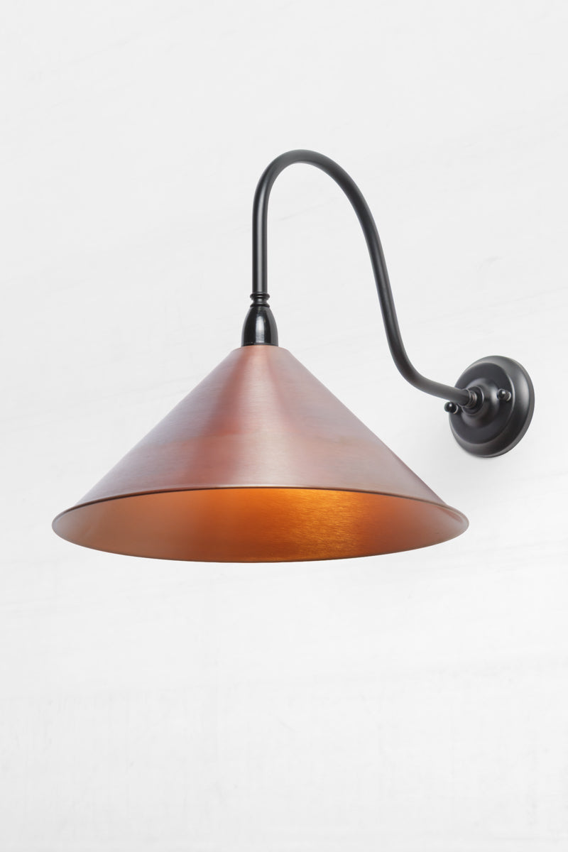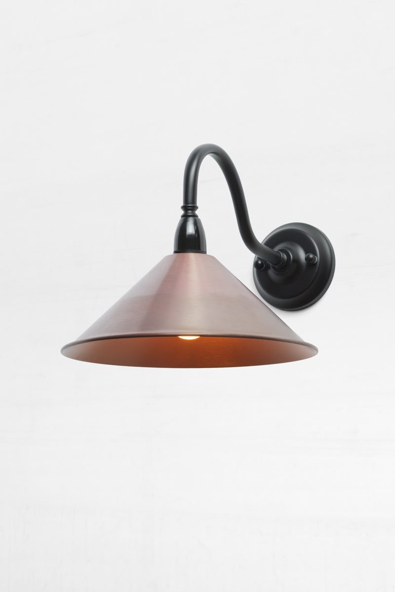 Full of vintage charm, the Cone Exterior Wall Light is a versatile addition to both traditional and modern spaces. With two steel wall sconce designs to choose from, each available in two sizes, its cone shaped shade in brass, copper or steel adds character and warmth. Available in eight finishes, it can be customised to suit any style, making it ideal for bathrooms, entryways or commercial applications.